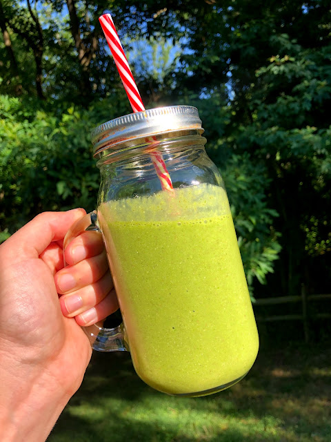 I tried out two of these smoothies- the Cacao Joy and Berry Green. The Cacao Joy was a nice, decadent treat, but I found it to be a bit too thin. I think if I were to make it again I would add ice or more frozen banana. I also definitely want to try substituting some of the almond milk for coffee or espresso- I think that would be delish. Onto the Berry Green (pictured above)- I don't usually add greens to my smoothies, but since I have SO many growing in my garden, I decided this was a great way to enjoy them! I only had frozen strawberries to use as the "berry" part, but I liked how it was just mildly sweet and definitely energized me through morning meetings, but I'm not completely sold for the greens yet!
